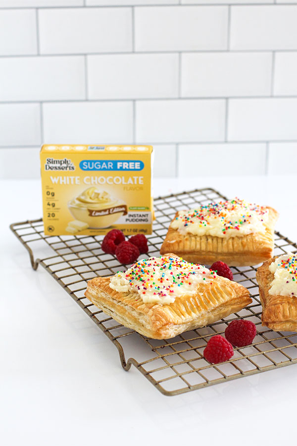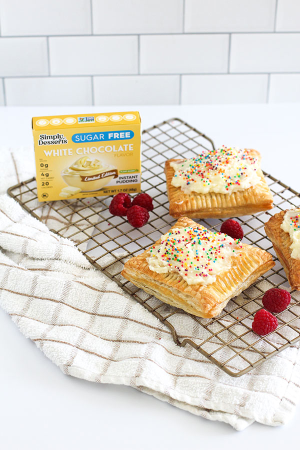 Let cool slightly, then drizzle with prepared Simply Desserts Sugar-Free White Chocolate Pudding.