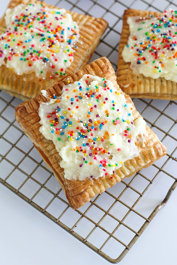 Roll out the thawed puff pastry and cut it into 6 equal rectangles or squares.