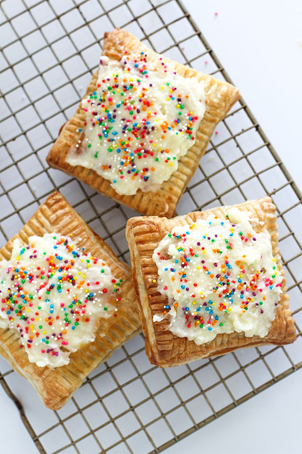 Spoon the raspberry filling onto the center of 3 pastry pieces.