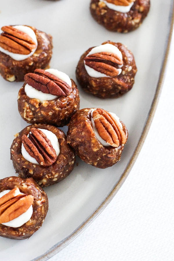 Roll the date-pecan mixture into small balls and place them on a platter.
